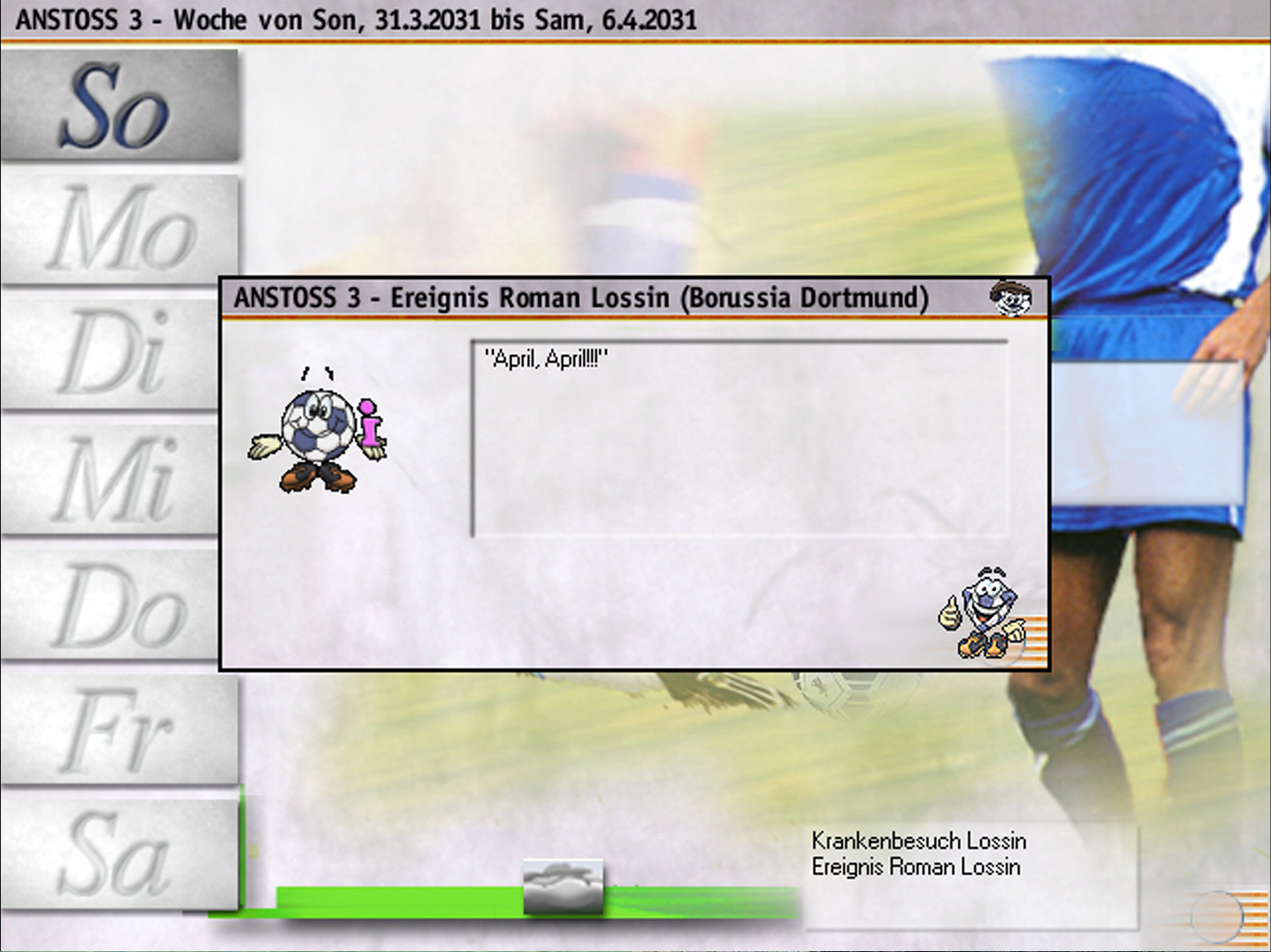 Despite its humor, Anstoß was a decent manager. It felt fun and never repeating to develop players and invest in your club.